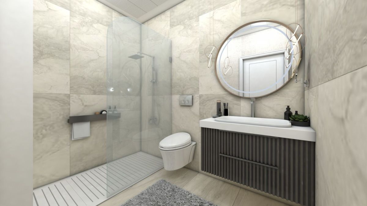 • Керамическая плитка в ванных комнатах