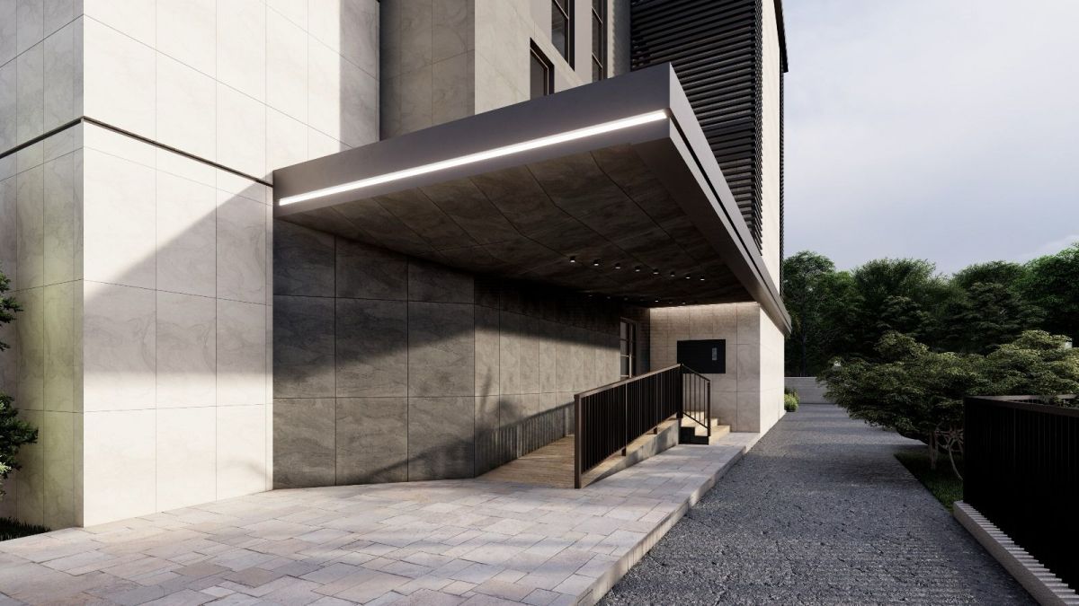 4-этажное здание, выполненное в современном архитектурном стиле.