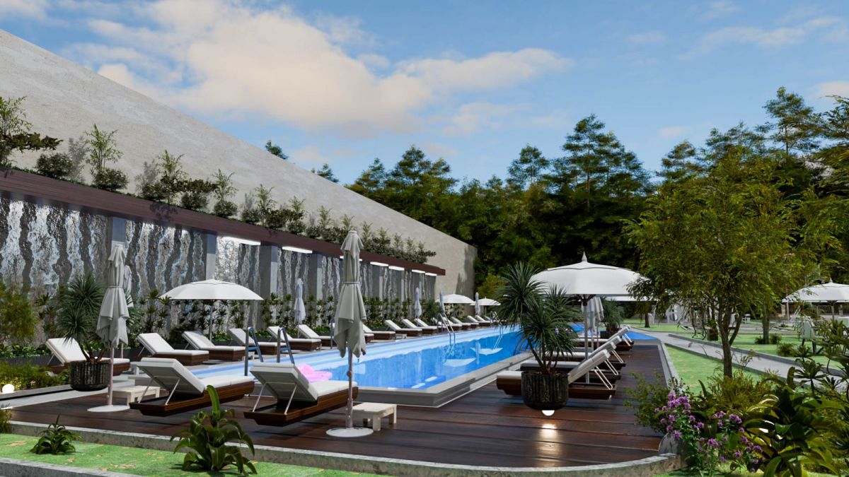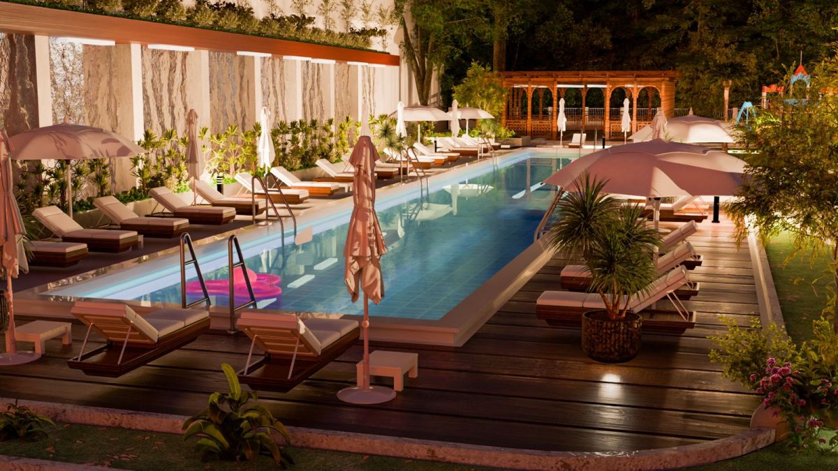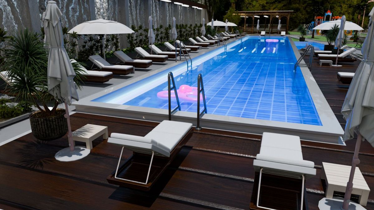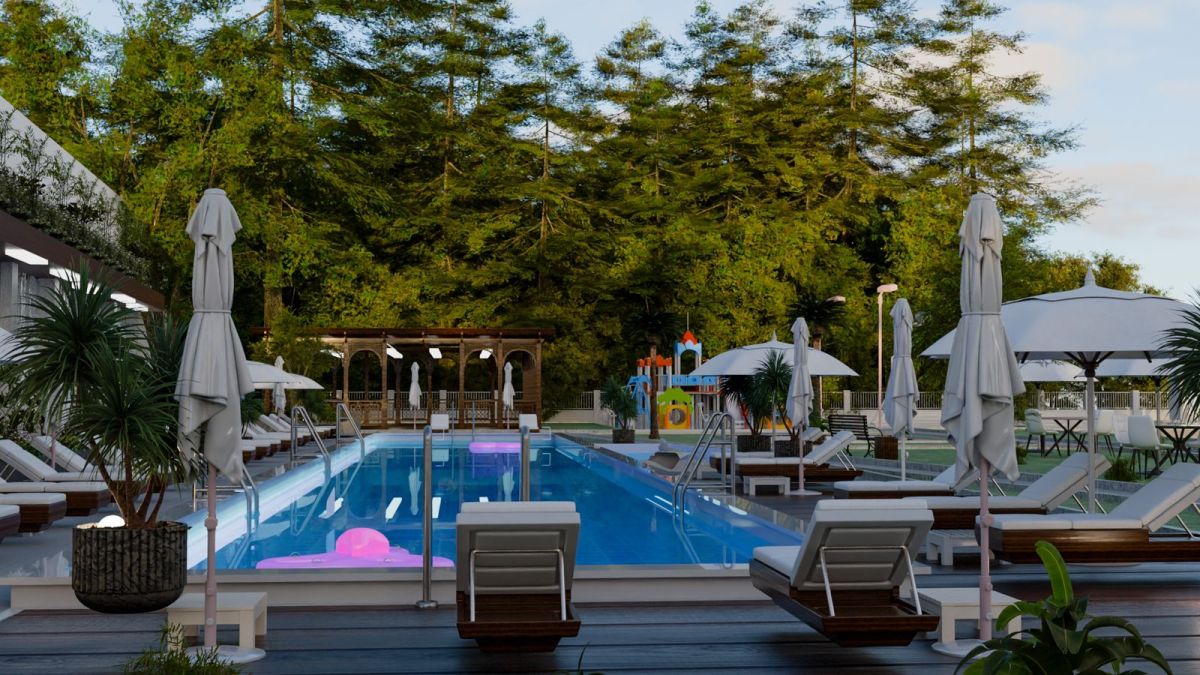 • Открытый бассейн с зонами загара и отдыха