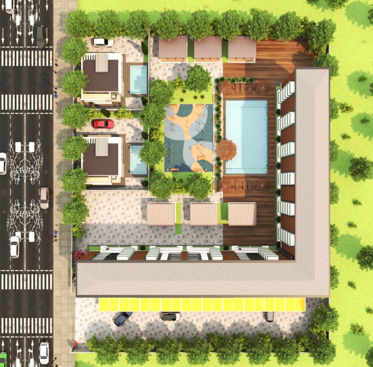 На территории комплекса предусмотрена полноценная социальная инфраструктура: