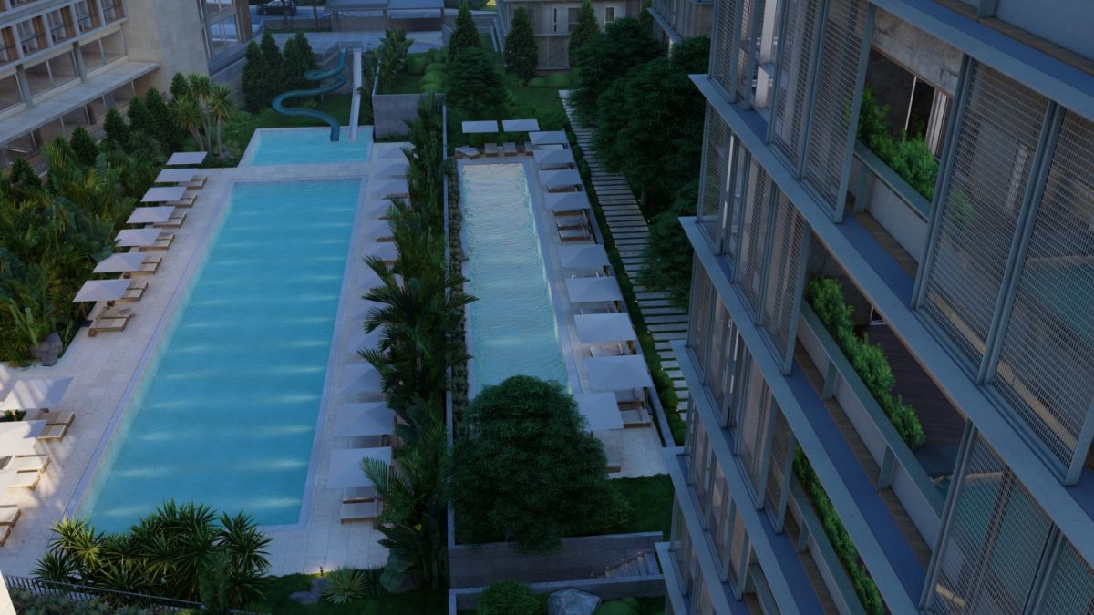 В жилом комплексе также предусмотрены резиденции- пентхаус площадью 563 м2, спроектированные по схеме 6+1. На балконах расположены бассейны площадью от 6 до 11 м2.