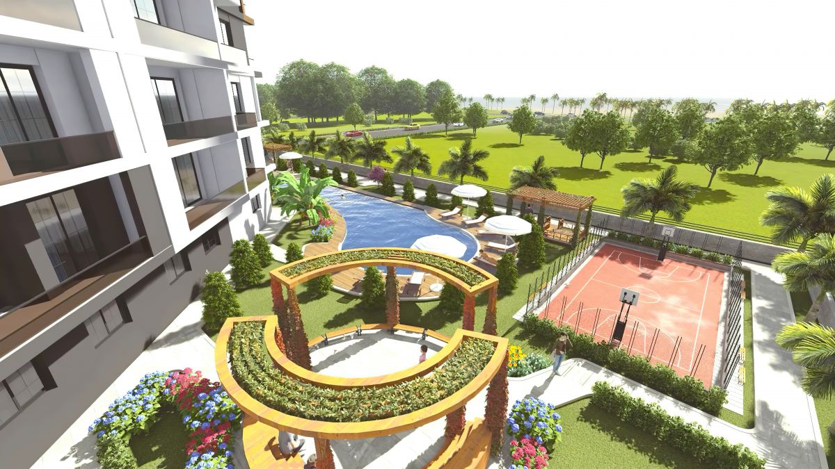Новый жилой проект 12-и этажного здания с обширной инфраструктурой в отличной локации в 500 м от моря.