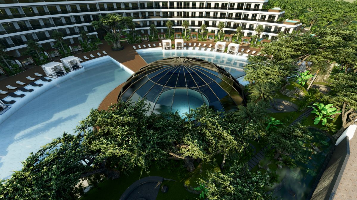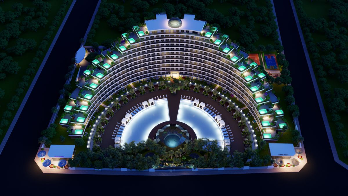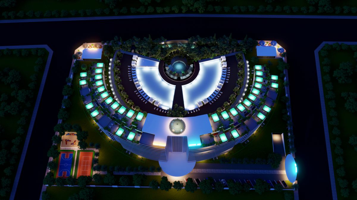 Дизайн полумесяца завораживает, а наличие уникальных идей, воплощенных в этом комплексе удивят самого искушенного клиента. Только здесь вы можете отвлечься чтением книг в собственной библиотеке, понаблюдать за созвездиями звезд в обсерватории, либо прогуляться по ботаническому саду и насладиться красотой экзотических растений.